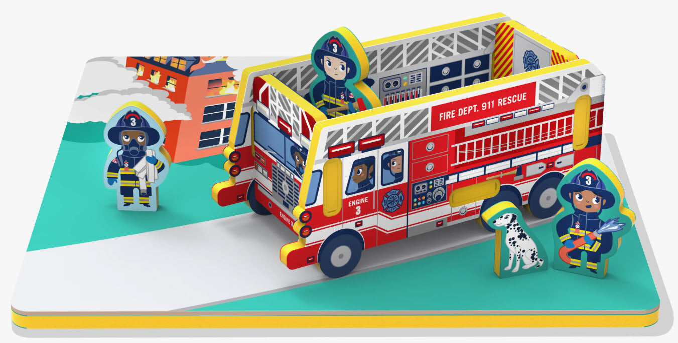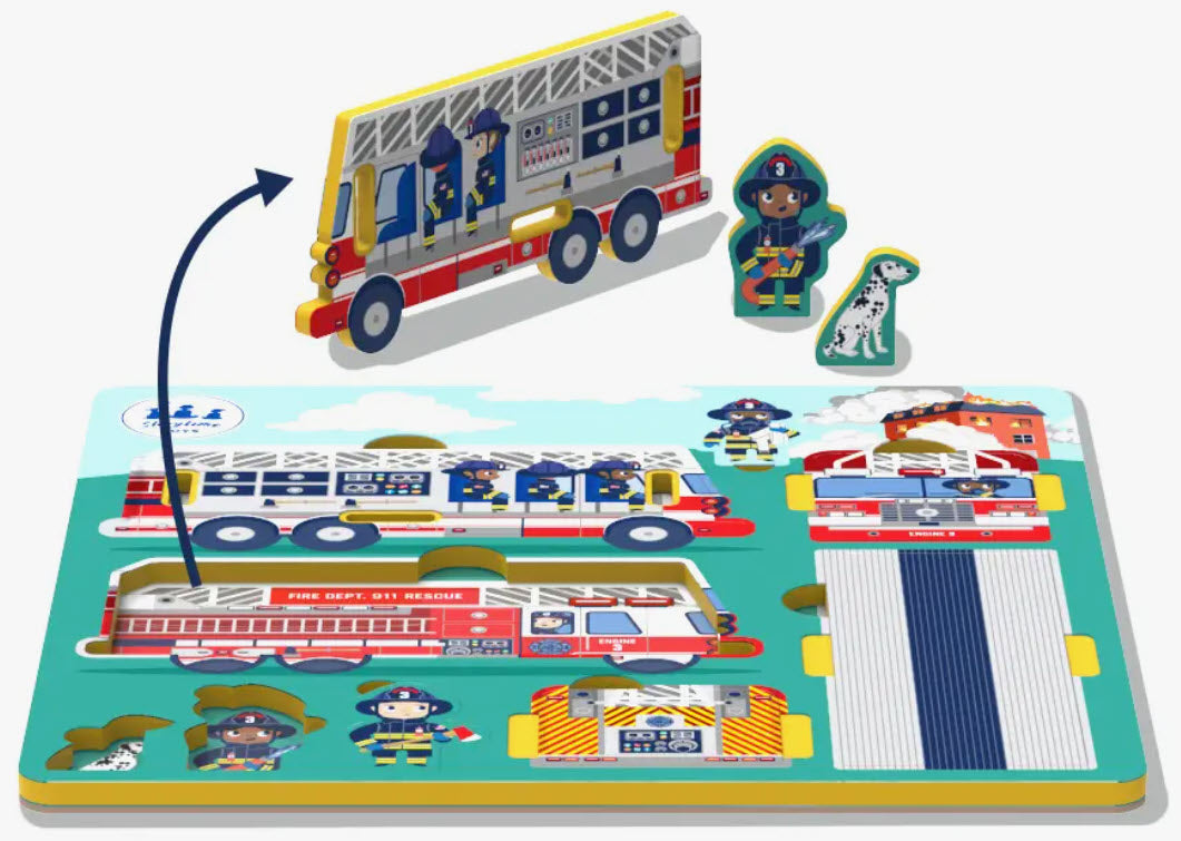 Your little firefighter in training will love building their own fire truck from these sturdy puzzle pieces made with durable EVA foam (the same material as yoga mats!) Flip the puzzle board over for a flat play surface to fill with imaginary adventures of daring rescue and shapes to turn the toy back into a puzzle. This two in one puzzle and toy is perfect for developing fine motor skills, creativity and confidence.